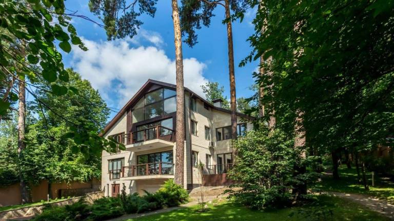 Роскошная загородная резиденция площадью 850 м расположена на просторном ухоженном участке 34 сотки рядом с лесом. Фасад в неоклассическом стилев бежевых тонах...