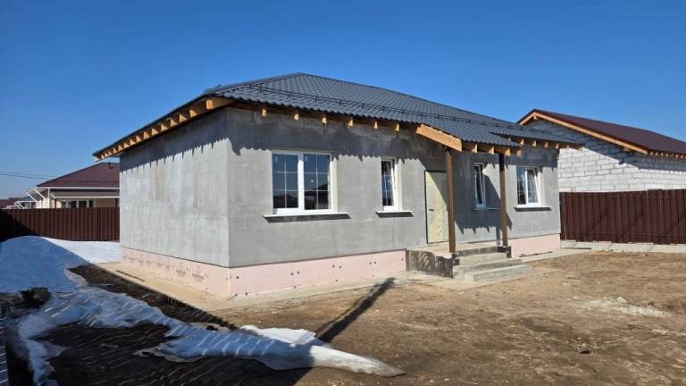 Новый 1-этажный коттедж 118,6 кв.м на участке 6 соток в КП «Новая Дятловка». Ключи – май 2026г. Завершается внешняя отделка фасада. Дом без внутренней отделки.