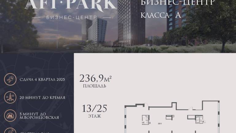 Продается просторное коммерческое помещение общей площадью 37 м2 на 4 этаже в строящемся бизнес-центре AFI Park. 21-этажный бизнес-центр AFI Park...