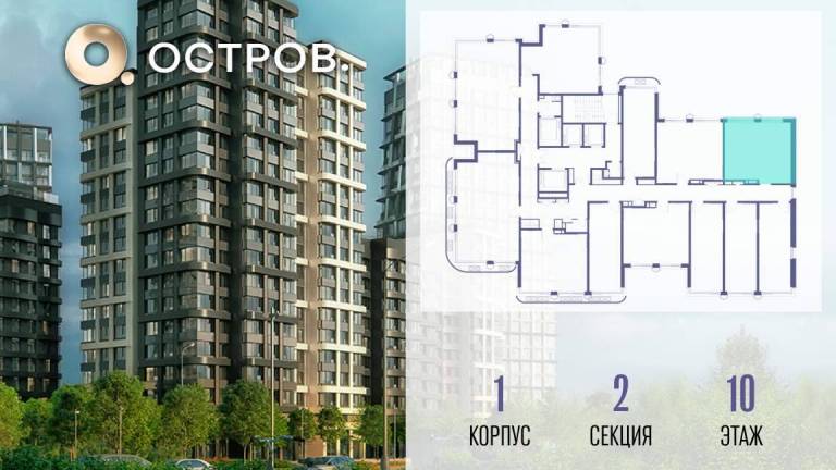 Продаётся 1-комн. квартира от застройщика: общая площадь 38.80 м, жилая 14.10 м, кухня 18.30 м, 10-й этаж, жилой квартал «Остров 14», корпус 1 (секция 2) .