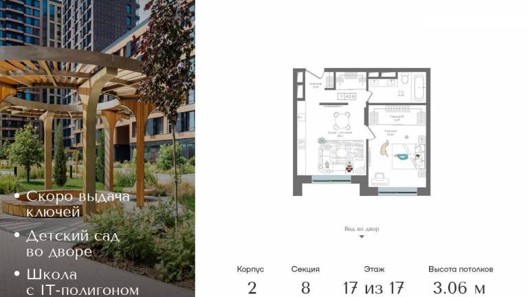 Квартира на 17 этаже в жилом комплексе премиум-класса «Преображенская площадь». Общая площадь: 42.8 кв.м. Проект премиум-класса в историческом районе...