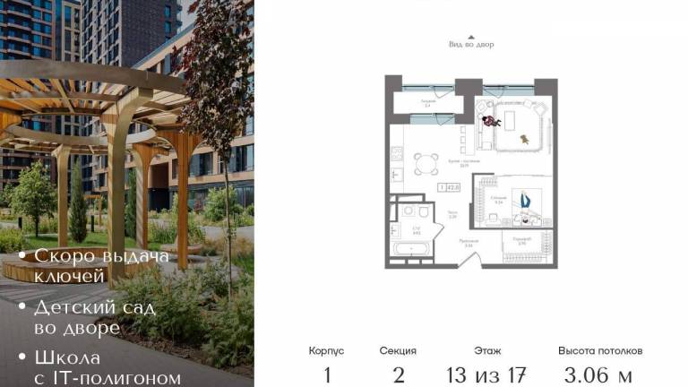 Фильтры2Квартира на 13 этаже в жилом комплексе премиум-класса «Преображенская площадь». Общая площадь: 42.8 кв.м. Проект премиум-класса в историческом районе...