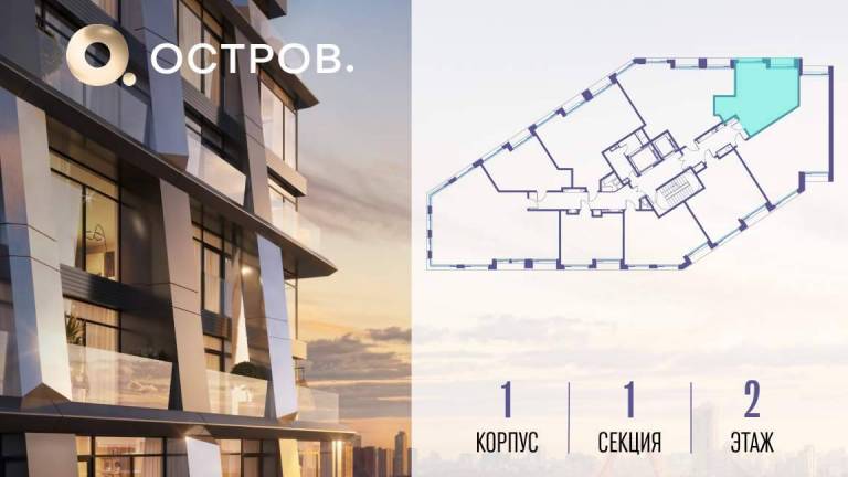 Продаётся 1-комн. квартира от застройщика: общая площадь 50.00 м, жилая 17.50 м, кухня 23.30 м, 19-й этаж, жилой квартал «Остров 7», корпус 7 (секция 2) . Срок...