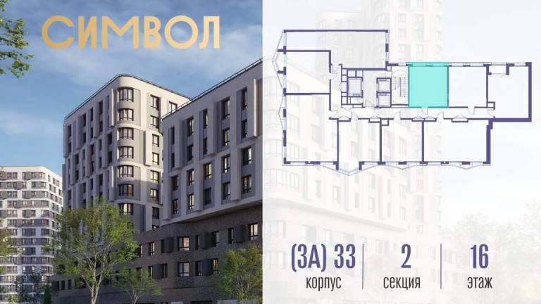 Продается 1-комнатная квартира от застройщика: общая площадь 37.20 м, жилая 12.80 м, кухня 14.10 м, 9-й этаж, жилой квартал «Вдохновение», корпус 33 (секция 3...