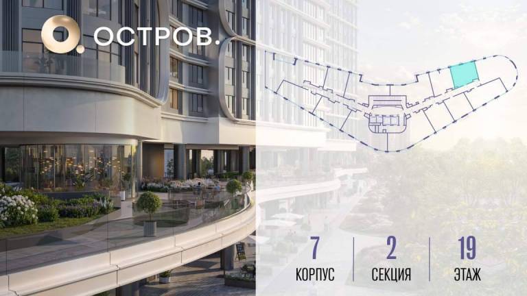 Продаётся 1-комн. квартира от застройщика: общая площадь 50.00 м, жилая 17.50 м, кухня 23.30 м, 19-й этаж, жилой квартал «Остров 7», корпус 7 (секция 2) . Срок...