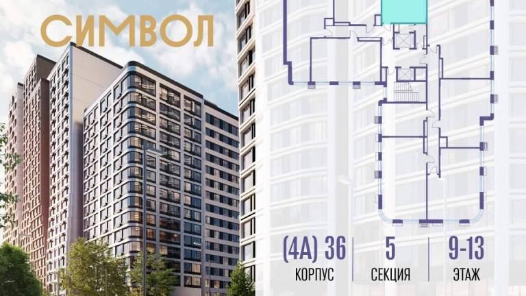 Продается 1-комнатная квартира от застройщика: общая площадь 39.20 м, жилая 14.00 м, кухня 17.80 м, 17-й этаж, жилой квартал «Гордость», корпус 36 (секция 2) .
