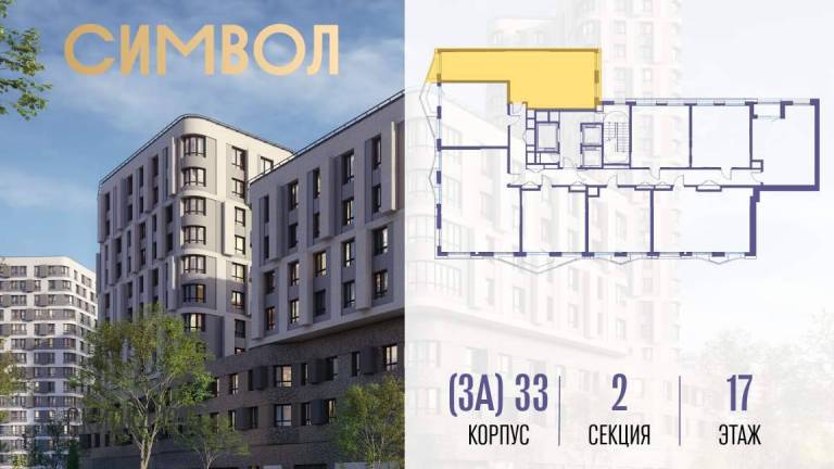 Продается 2-комнатная квартира от застройщика: общая площадь 67.40 м, жилая 29.20 м, кухня 19.50 м, 17-й этаж, жилой квартал «Вдохновение», корпус 33 (секция...