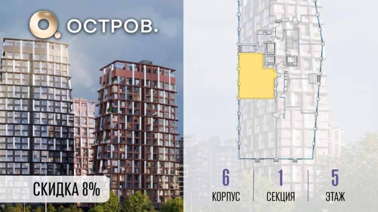 Продаётся 2-комн. квартира от застройщика: общая площадь 79.80 м, жилая 29.80 м, кухня 29.50 м, 12-й этаж, жилой квартал «Остров 14», корпус 6 (секция 1) .