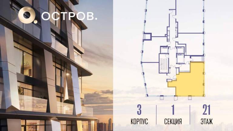 Фильтры2Продаётся 2-комн. квартира от застройщика: общая площадь 73.70 м, жилая 28.30 м, кухня 26.90 м, 21-й этаж, жилой квартал «Остров 12», корпус 3 (секция 1) .