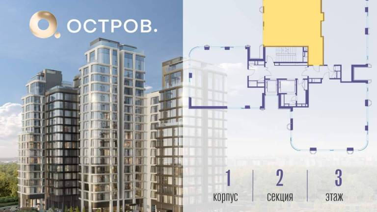 Продаётся 2-комн. квартира от застройщика: общая площадь 84.60 м, жилая 31.90 м, кухня 40.40 м, 12-й этаж, жилой квартал «Остров 12», корпус 1 (секция 1) .