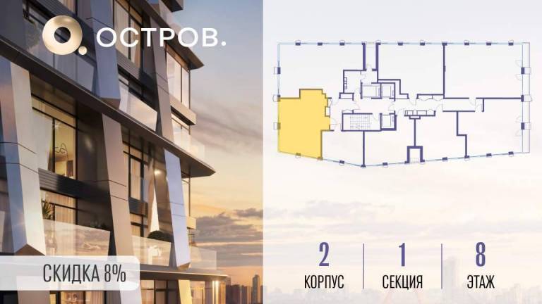 Фильтры2Продаётся 2-комн. квартира от застройщика: общая площадь 65.20 м, жилая 31.00 м, кухня 19.80 м, 8-й этаж, жилой квартал «Остров 12», корпус 2 (секция 1) . Срок...