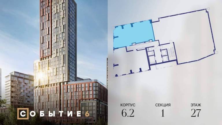 Продаётся 3-комнатная квартира от застройщика: общая площадь 81.70 м, жилая 46.00 м, кухня 17.40 м, 35-й этаж, жилой квартал «Событие-6», корпус 2 (секция 5...