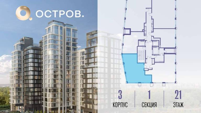 Фильтры2Продаётся 3-комн. квартира от застройщика: общая площадь 67.20 м, жилая 39.80 м, кухня 14.20 м, 21-й этаж, жилой квартал «Остров 12», корпус 3 (секция 1) .