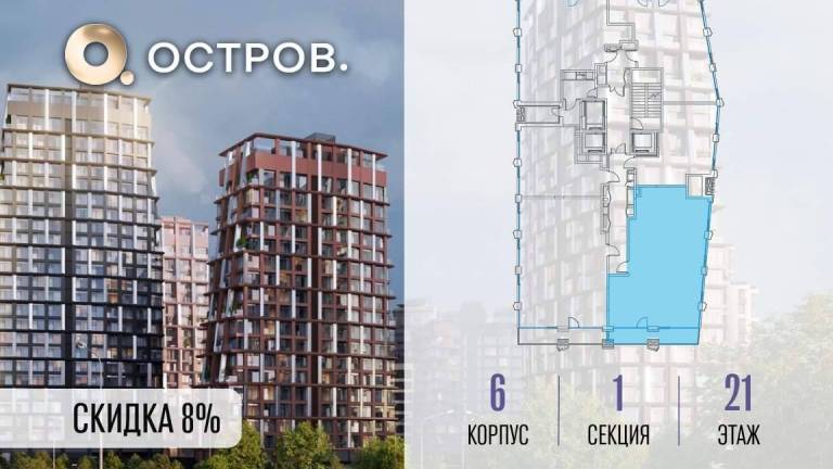 Фильтры2Продаётся 3-комн. квартира от застройщика: общая площадь 99.30 м, жилая 39.50 м, кухня 29.80 м, 21-й этаж, жилой квартал «Остров 14», корпус 6 (секция 1) .