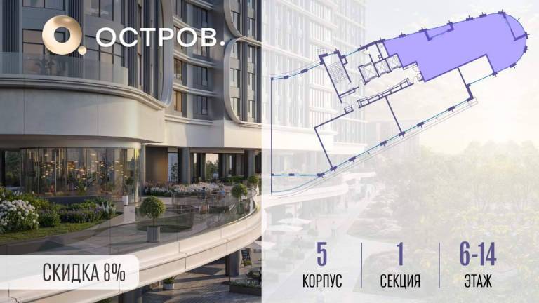 Продаётся 4-комн. квартира от застройщика: общая площадь 128.20 м, жилая 48.40 м, кухня 44.70 м, 16-й этаж, жилой квартал «Остров 7», корпус 4 (секция 2) .