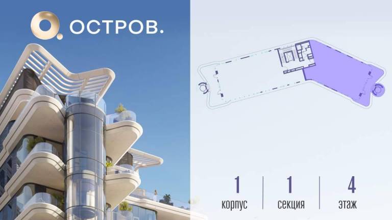 Продаётся 4-комн. квартира от застройщика: общая площадь 128.20 м, жилая 48.40 м, кухня 44.70 м, 13-й этаж, жилой квартал «Остров 7», корпус 4 (секция 2) .