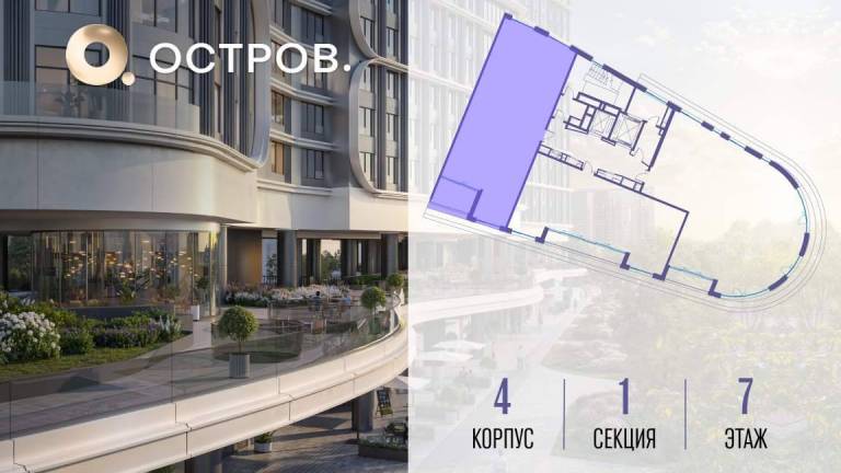 Продаётся 4-комн. квартира от застройщика: общая площадь 148.70 м, жилая 50.40 м, кухня 43.10 м, 14-й этаж, жилой квартал «Остров 7», корпус 5 (секция 1) .