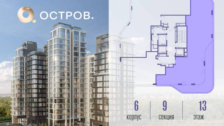 Продаётся 4-комн. квартира от застройщика: общая площадь 151.30 м, жилая 58.10 м, кухня 40.90 м, 9-й этаж, жилой квартал «Остров 12», корпус 6 (секция 1) .