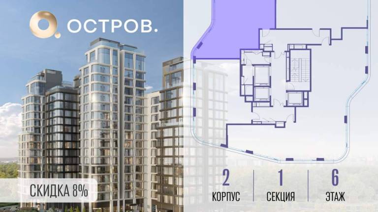 Продаётся 4-комн. квартира от застройщика: общая площадь 114.20 м, жилая 58.90 м, кухня 28.10 м, 2-й этаж, жилой квартал «Остров 12», корпус 2 (секция 1) .