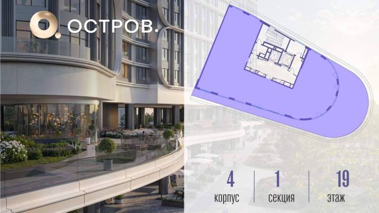Продаётся 4-комн. квартира от застройщика: общая площадь 191.80 м, жилая 48.30 м, кухня 68.10 м, 19-й этаж, жилой квартал «Остров 7», корпус 2 (секция 1) .