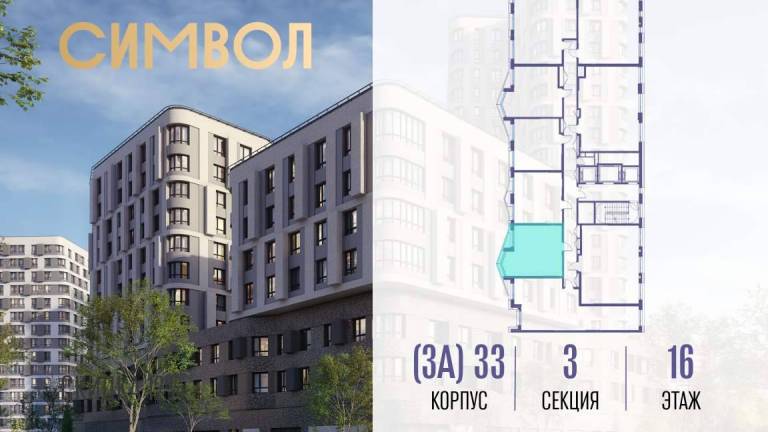 Продаётся 1-комнатная квартира от застройщика: общая площадь 38.80 м, жилая 14.90 м, кухня 16.00 м, 30-й этаж, жилой квартал «Событие-6», корпус 2 (секция 5...