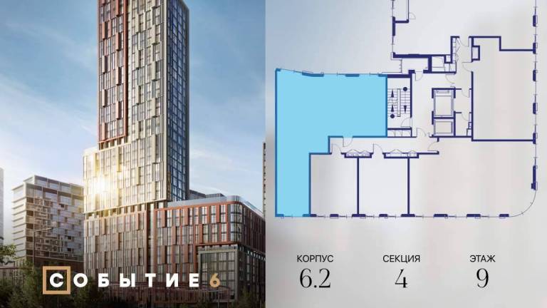 ФильтрыПродаётся 3-комнатная квартира от застройщика: общая площадь 108.90 м, жилая 42.40 м, кухня 23.30 м, 9-й этаж, жилой квартал «Событие-6», корпус 2 (секция 4...
