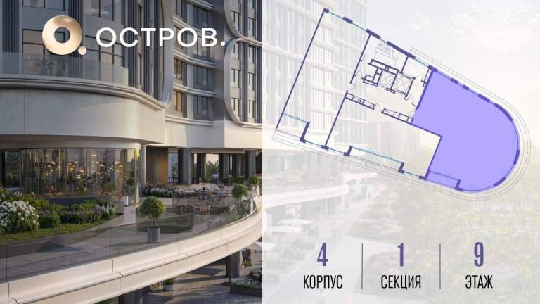 Продаётся 4-комн. квартира от застройщика: общая площадь 148.70 м, жилая 50.40 м, кухня 43.10 м, 10-й этаж, жилой квартал «Остров 7», корпус 3 (секция 1) .