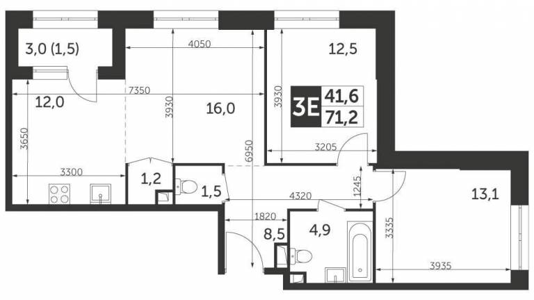 Продаётся 3-комн. квартира от застройщика: общая площадь 99.00 м, жилая 46.40 м, кухня 22.50 м, 13-й этаж, жилой квартал «Остров 12», корпус 1 (секция 2) .