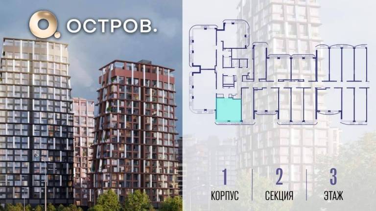 Продаётся квартира от застройщика: общая площадь 28.00 м, жилая 14.40 м, кухня 5.00 м, 3-й этаж, жилой квартал «Остров 14», корпус 1 (секция 1) . Срок сдачи: 2...