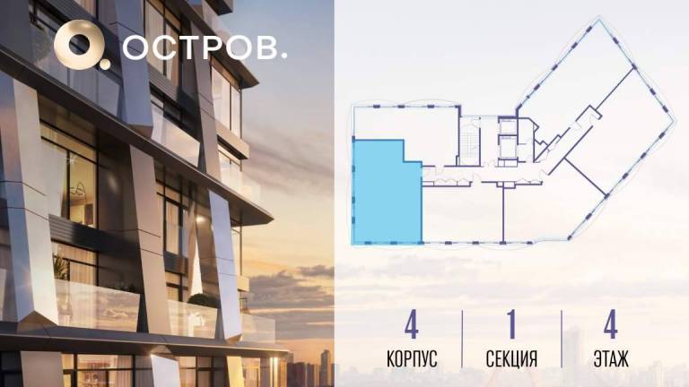 Продаётся 4-комн. квартира от застройщика: общая площадь 127.00 м, жилая 42.70 м, кухня 39.20 м, 20-й этаж, жилой квартал «Остров 7», корпус 7 (секция 1) .