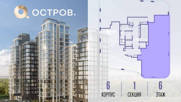Продаётся 4-комн. квартира от застройщика: общая площадь 151.30 м, жилая 58.10 м, кухня 40.90 м, 9-й этаж, жилой квартал «Остров 12», корпус 6 (секция 1) .
