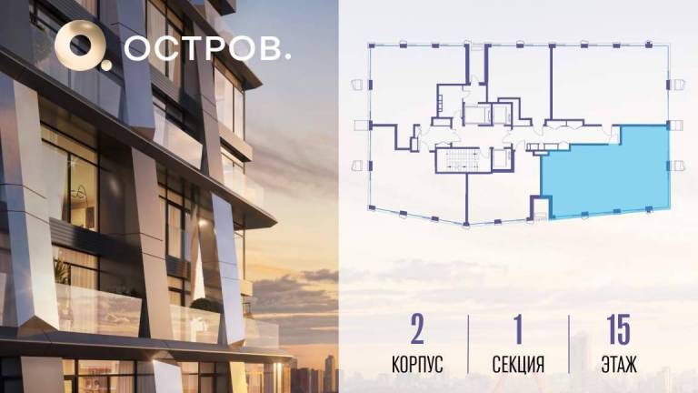 Продаётся 2-комн. квартира от застройщика: общая площадь 73.90 м, жилая 24.80 м, кухня 21.30 м, 16-й этаж, жилой квартал «Остров 12», корпус 3 (секция 1) .