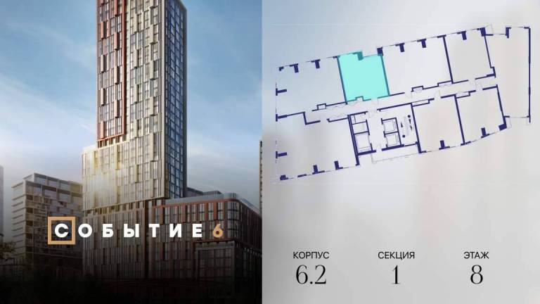 ФильтрыПродаётся 1-комнатная квартира от застройщика: общая площадь 44.40 м, жилая 16.70 м, кухня 20.20 м, 8-й этаж, жилой квартал «Событие-6», корпус 2 (секция 1...