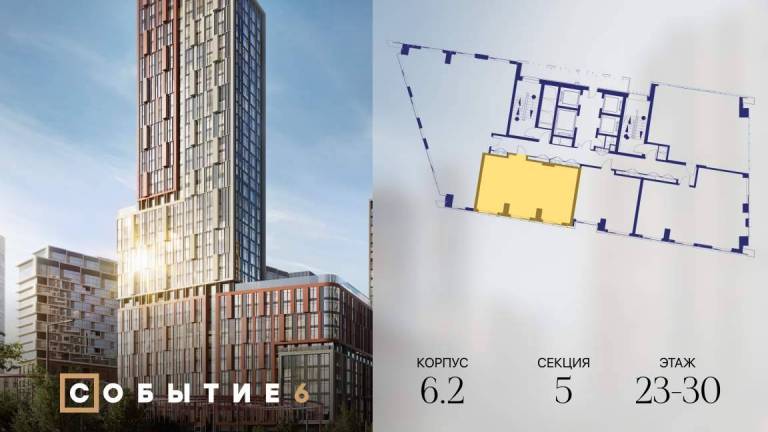 ФильтрыПродаётся 2-комнатная квартира от застройщика: общая площадь 61.80 м, жилая 32.90 м, кухня 17.80 м, 30-й этаж, жилой квартал «Событие-6», корпус 2 (секция 5...