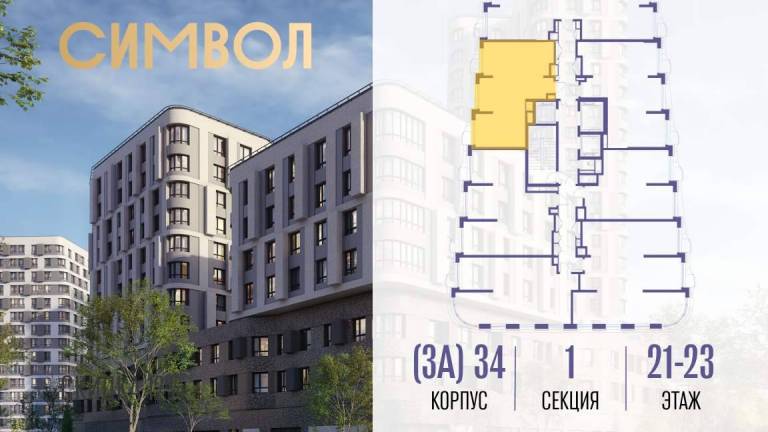 Продаётся 1-комнатная квартира от застройщика: общая площадь 38.30 м, жилая 14.60 м, кухня 15.70 м, 21-й этаж, жилой квартал «Событие-6», корпус 2 (секция 5...