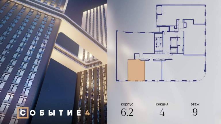 Продаётся 2-комнатная квартира от застройщика: общая площадь 64.90 м, жилая 29.40 м, кухня 20.80 м, 4-й этаж, жилой квартал «Событие-6», корпус 2 (секция 3...