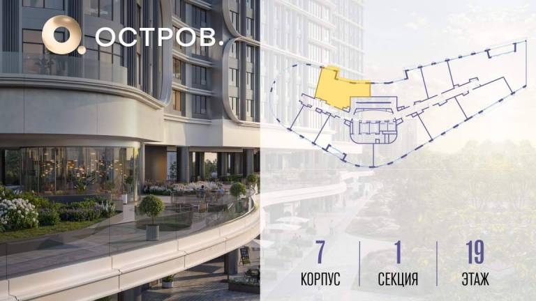 Продаётся 4-комн. квартира от застройщика: общая площадь 127.00 м, жилая 42.70 м, кухня 39.20 м, 20-й этаж, жилой квартал «Остров 7», корпус 7 (секция 1) .