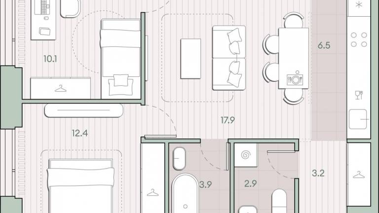 Старт продаж квартир в ЖК бизнес+ класса от девелопера STONE В продаже функциональная и светлая двуспальная квартира с кухней-гостиной и двумя спальнями для...