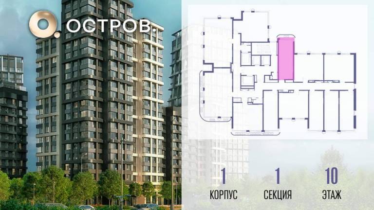 Продаётся квартира от застройщика: общая площадь 28.00 м, жилая 14.40 м, кухня 5.00 м, 9-й этаж, жилой квартал «Остров 14», корпус 1 (секция 1) . Срок сдачи: 2...