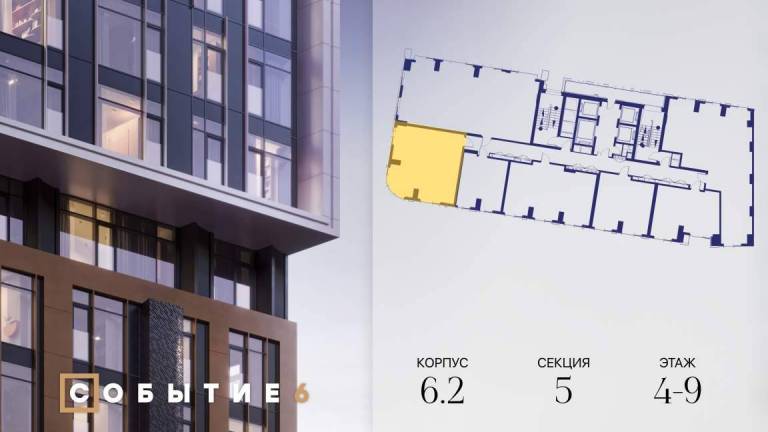 Продаётся 2-комнатная квартира от застройщика: общая площадь 61.80 м, жилая 32.90 м, кухня 17.80 м, 30-й этаж, жилой квартал «Событие-6», корпус 2 (секция 5...