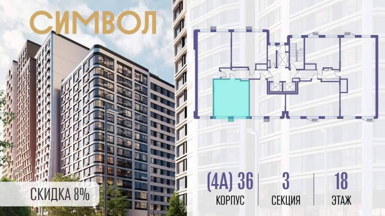 Продается квартира-студия от застройщика: общая площадь 35.30 м, жилая 10.00 м, кухня 14.80 м, 18-й этаж, жилой квартал «Гордость», корпус 36 (секция 4) . Срок...