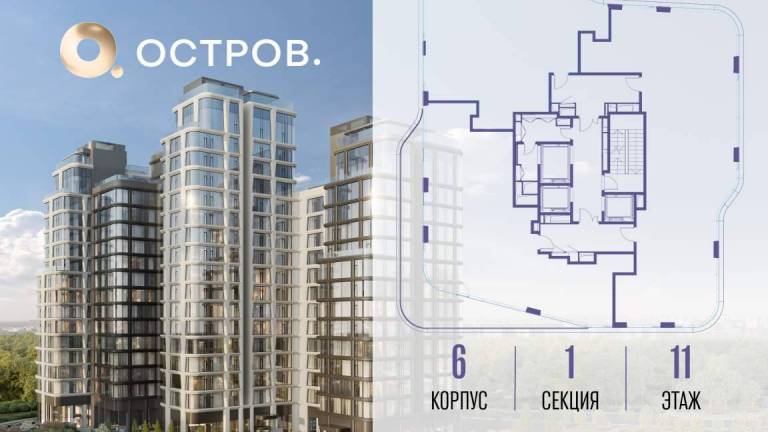 Продаётся 4-комн. квартира от застройщика: общая площадь 160.50 м, жилая 61.80 м, кухня 33.30 м, 14-й этаж, жилой квартал «Остров 12», корпус 6 (секция 1) .