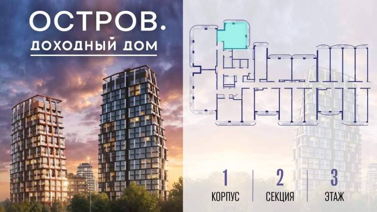 Продаётся 2-комн. квартира от застройщика: общая площадь 63.00 м, жилая 27.50 м, кухня 22.30 м, 3-й этаж, жилой квартал «Остров 14», корпус 1 (секция 2) . Срок...