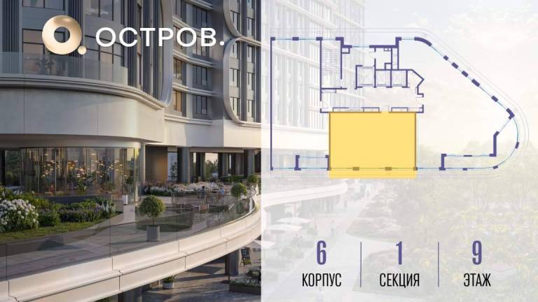 Продаётся 1-комн. квартира от застройщика: общая площадь 47.40 м, жилая 14.40 м, кухня 21.60 м, 10-й этаж, жилой квартал «Остров 12», корпус 1 (секция 1) .