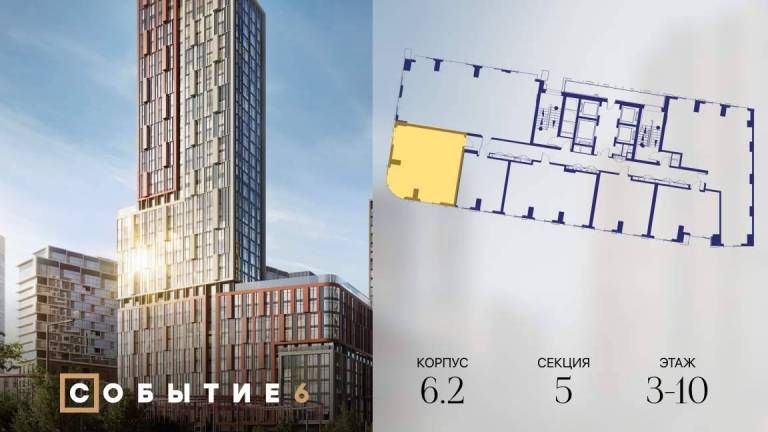 Продаётся 2-комнатная квартира от застройщика: общая площадь 59.50 м, жилая 29.80 м, кухня 18.30 м, 6-й этаж, жилой квартал «Событие-6», корпус 2 (секция 2...