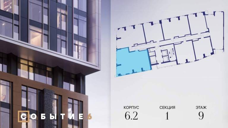 Продаётся 3-комнатная квартира от застройщика: общая площадь 77.00 м, жилая 41.90 м, кухня 17.60 м, 32-й этаж, жилой квартал «Событие-6», корпус 2 (секция 5...