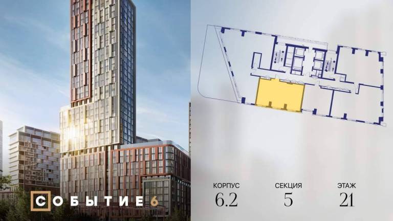 Продаётся 2-комнатная квартира от застройщика: общая площадь 61.80 м, жилая 32.90 м, кухня 17.80 м, 23-й этаж, жилой квартал «Событие-6», корпус 2 (секция 5...