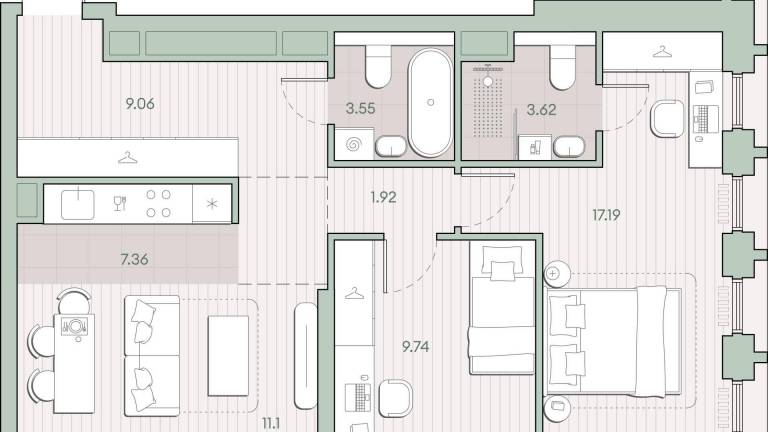 Продается 3-комн. квартира, площадью 97.28 м2 в монолитной новостройке в 12 мин. пешком от м. Кунцевская, район города – Кунцево. Возможен вариант покупки с...