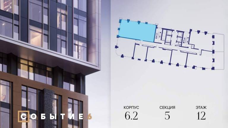 Продаётся 2-комнатная квартира от застройщика: общая площадь 62.10 м, жилая 33.00 м, кухня 17.80 м, 37-й этаж, жилой квартал «Событие-6», корпус 2 (секция 5...