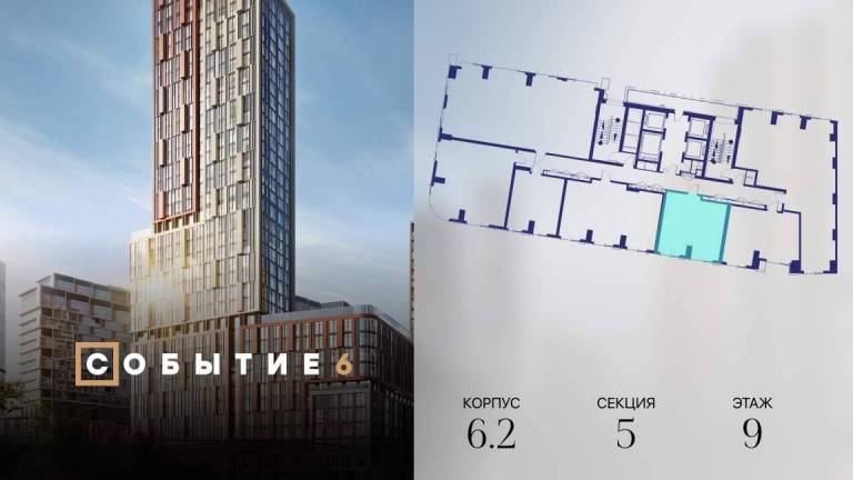Продаётся 2-комнатная квартира от застройщика: общая площадь 64.30 м, жилая 26.30 м, кухня 20.60 м, 9-й этаж, жилой квартал «Событие-6», корпус 2 (секция 5...